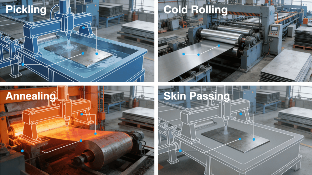Cold rolling involves several key steps: