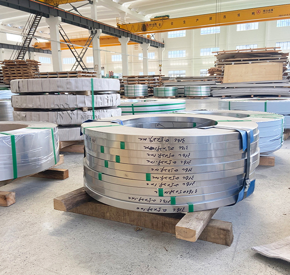 0.1 mm 304 stainless steel strip stamped with thickness tolerance ±0.005 mm, achieving a 99.5% stamping pass rate in electronic battery housings.
