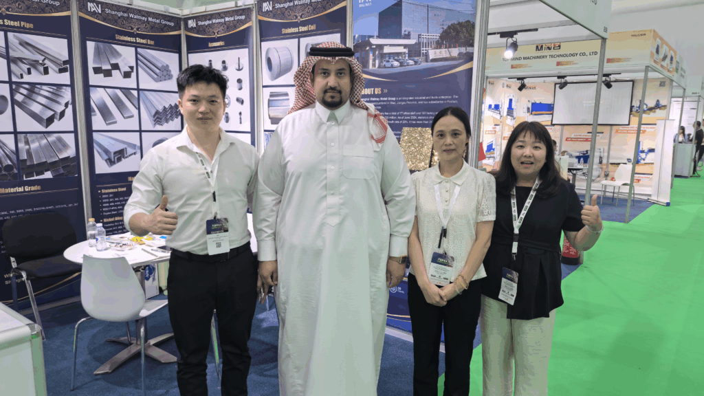 The event ran from October 12th to 15th and brought together leaders, distributors, manufacturers, EPC contractors, and decision-makers from across the Gulf. Shanghai Walmay Metal Group Co., Ltd. participated at Booth B59 in Hall 5. Our team held focused discussions, met partners, and gained firsthand insights into the fast-growing stainless steel market.