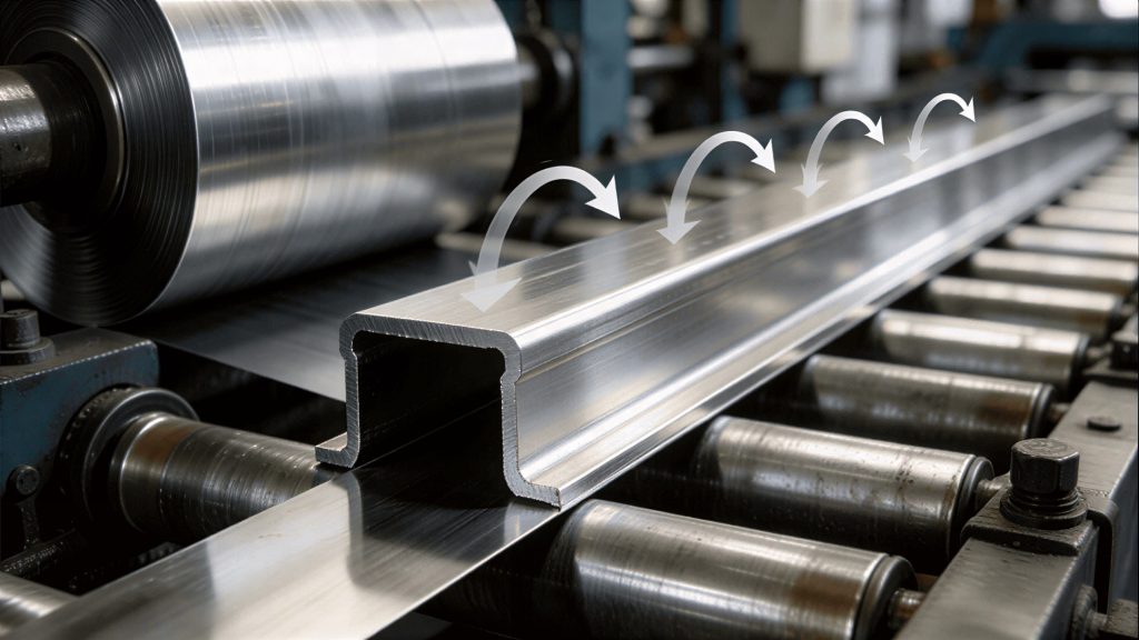 Roll forming is ideal for long parts with consistent cross-sections and tight tolerances.
