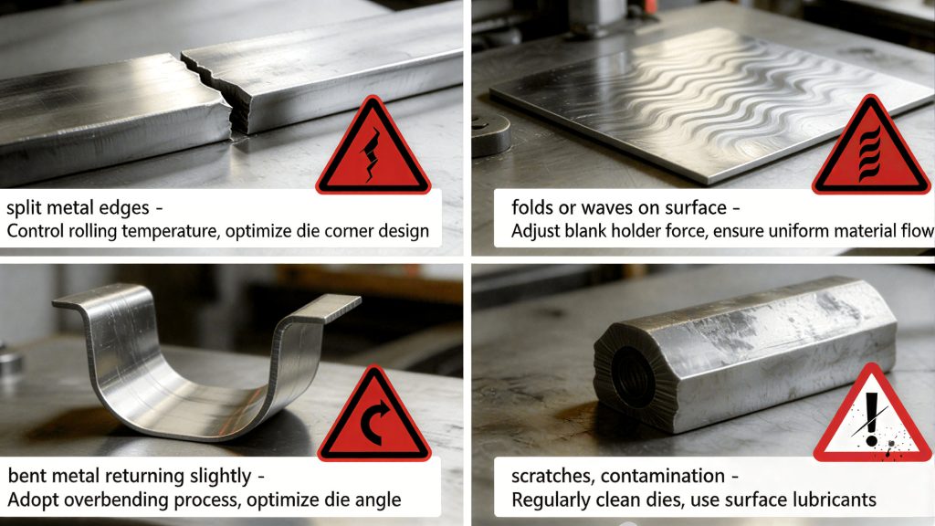 Careful material selection, tooling design, lubrication, and process control help minimize these issues.